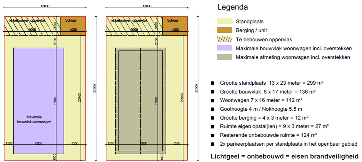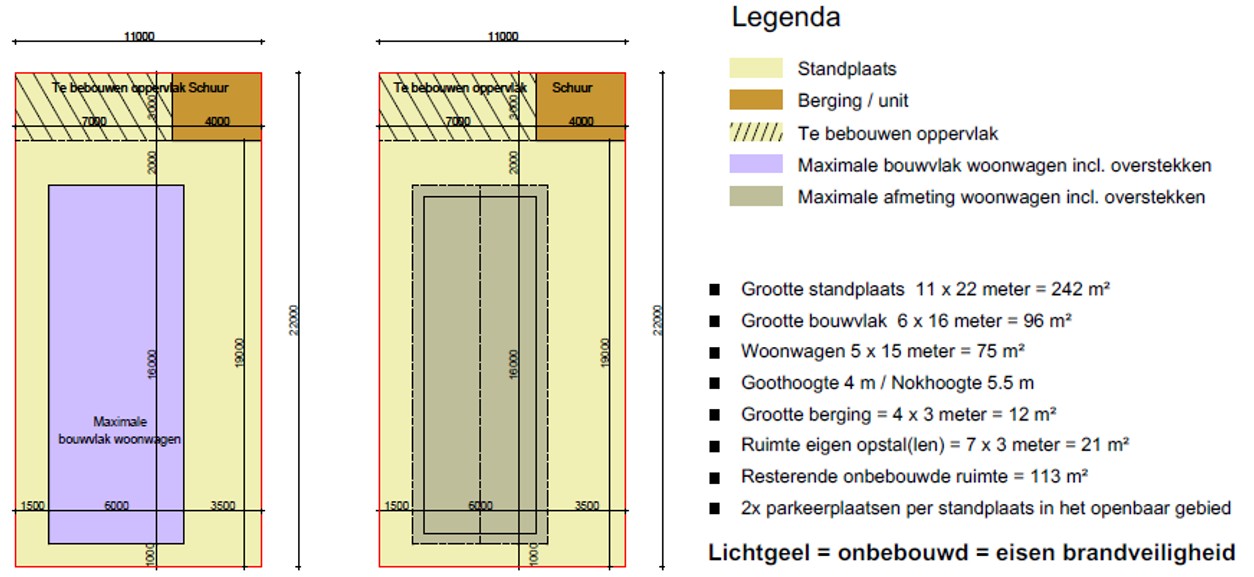 Voorbeeld van maatvoering koopstandplaats + eigen woonwagen in relatie tot en brandveiligheidsregels