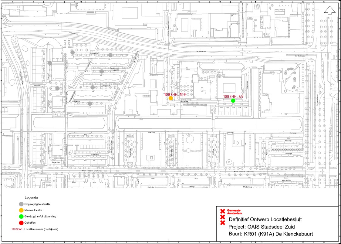 Besluit van het dagelijks bestuur van stadsdeel Zuid voor het verplaatsen van een voorgenomen afval inzamellocaties op De Klencke 87 naar De Klencke 109 en wijziging van een inzamellocatie op De Klencke 49
