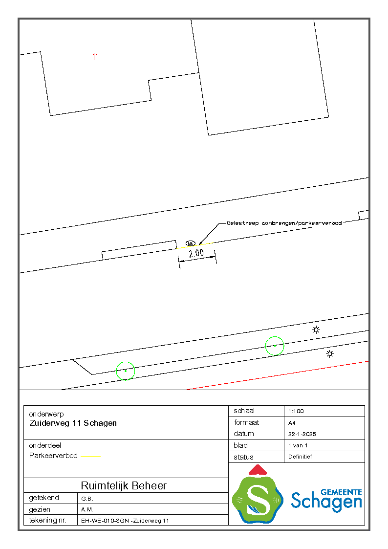 Gemeente Schagen- Verkeersbesluit instellen parkeerverbod (ged.) nabij Zuiderweg 11, Schagen.