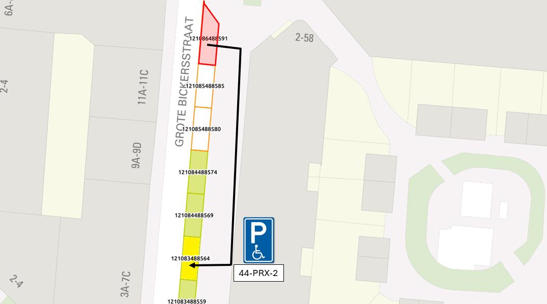ter hoogte van perceel Grote Bickersstraat 11 een gehandicaptenparkeerplaats op kenteken 44-PRX-2 is gelegen;