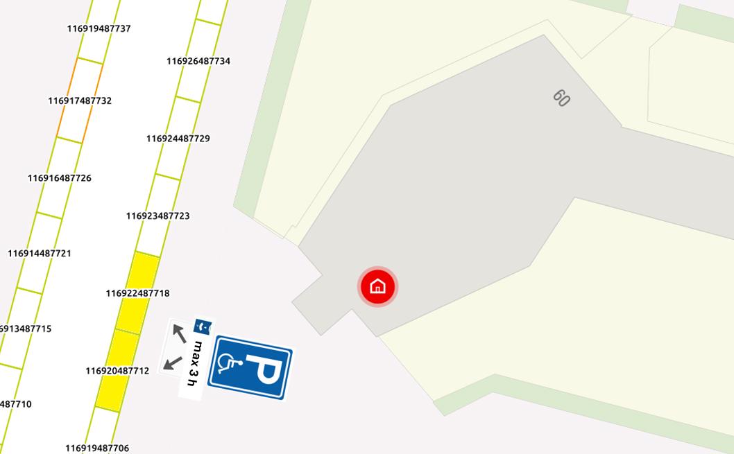 Door het plaatsen van verkeersbord conform model E6 van Bijlage I van het RVV 1990, inclusief het aanbrengen van een onderbord met de tekst ’max 3 uur’ (+symbool parkeerschijf) gecombineerd met onderbord OB504 met daarop afgebeeld twee pijlen op een hoek van 45° (RVV 1990), aan te wijzen: twee gehandicaptenparkeerplaatsen in de Burgemeester Rendorpstraat met een maximale parkeerduur van 3 uur, ter hoogte van perceelnummer 60, op de parkeervaknummers 116920487712 en 116922487718.