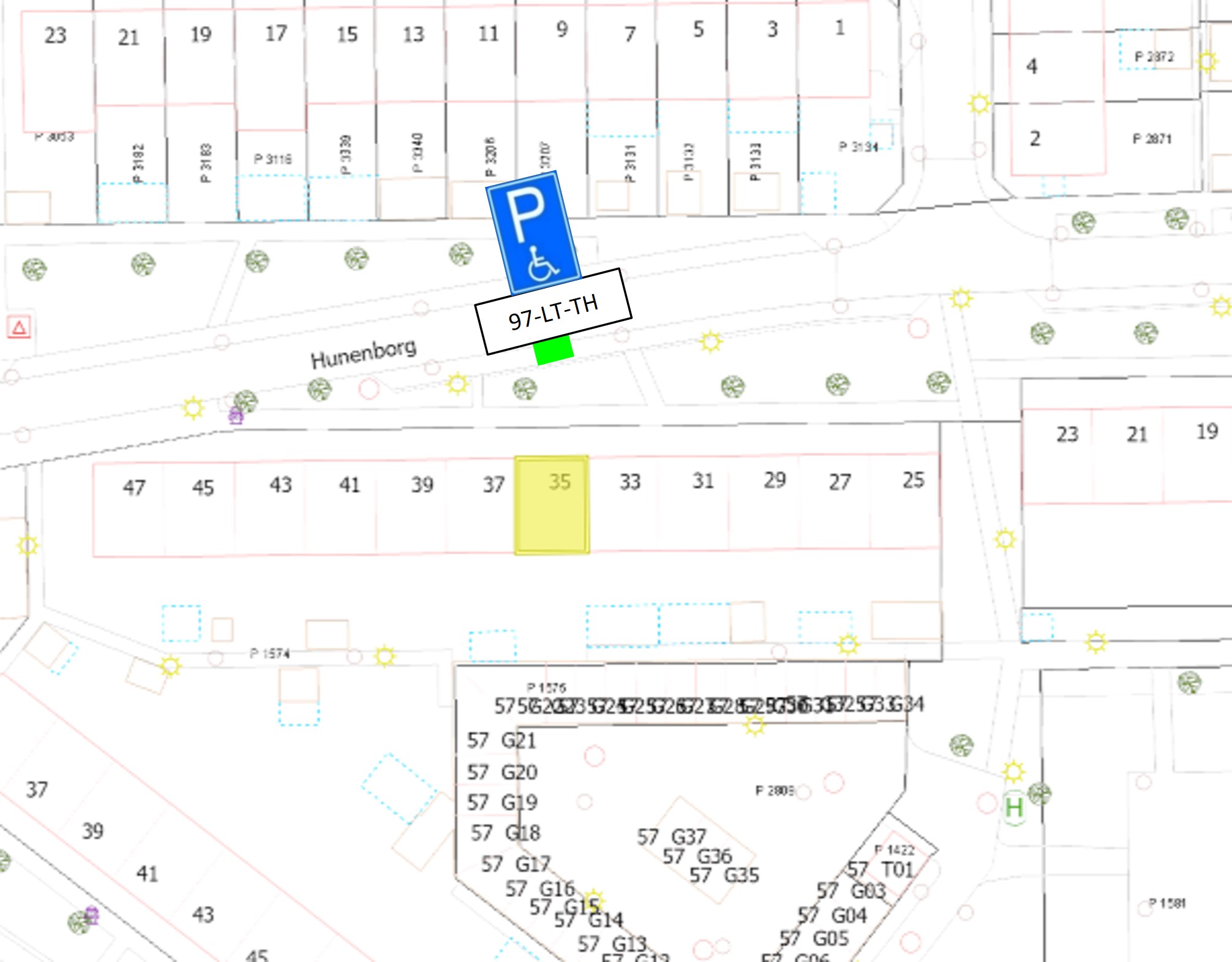Het aanwijzen en inrichten van een gehandicaptenparkeerplaats op kenteken aan de Hunenborg door het plaatsen van het verkeersbord E6 van het RVV 1990 met onderbord met kenteken 97-LT-TH, zoals is aangegeven op de overzichtstekening in dit besluit.