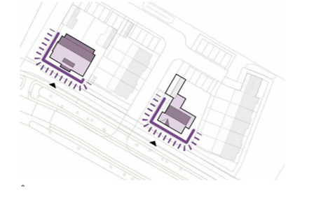 zichtzijden ‘representatief’: de gevels die goed zichtbaar zijn vanaf de openbare ruimte, moeten als ‘voorgevel’ worden ontworpen. Dat betekent dat er zich hier gevelopeningen (ramen, deuren) moeten bevinden.