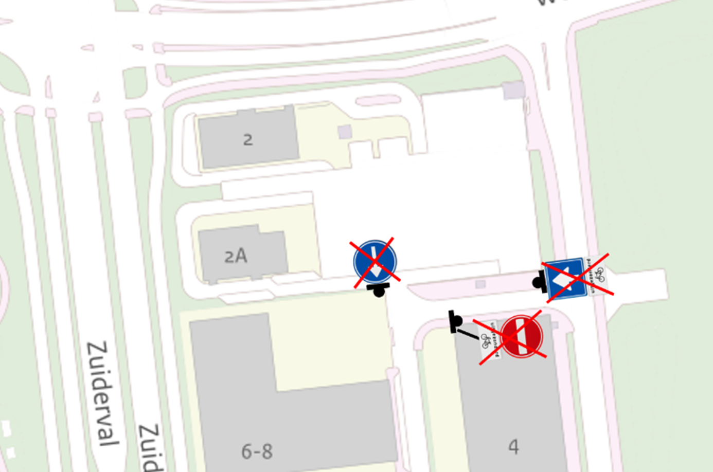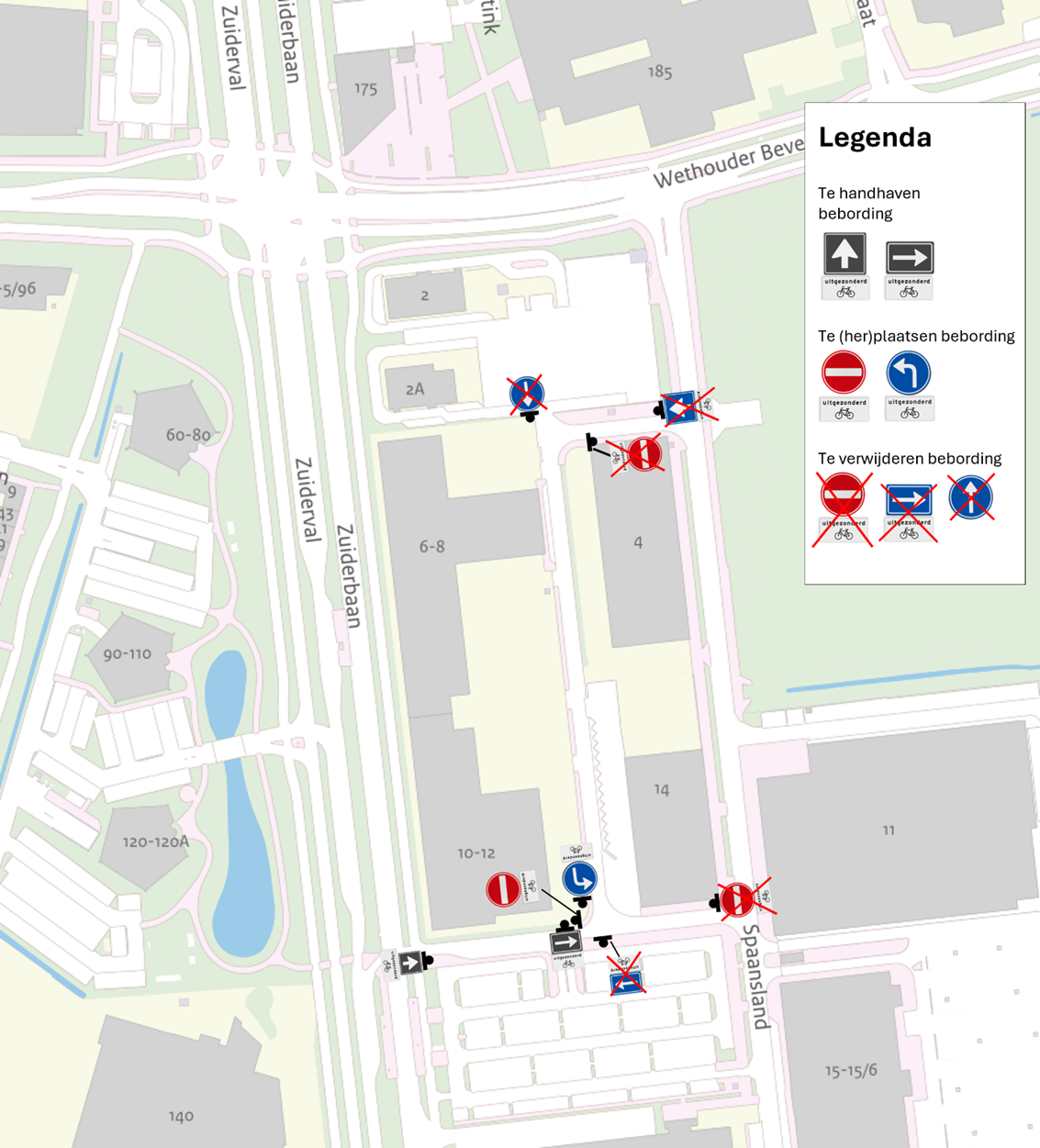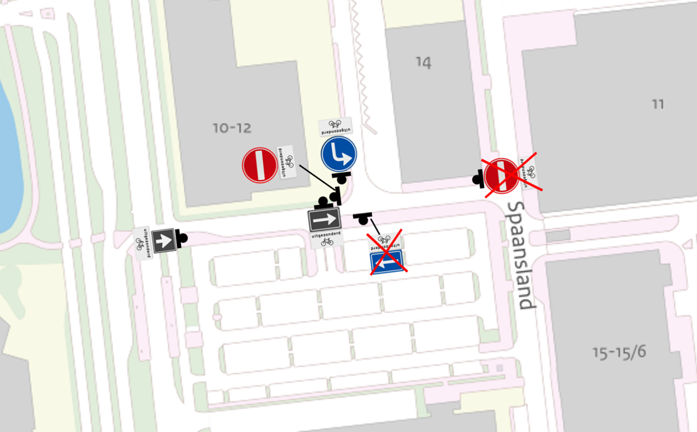 dat op bovenstaande verkeersmaatregelen een uitzondering voor fietsers wordt gemaakt, overeenkomstig het geldende eenrichtingsverkeer op het weggedeelte van Spaansland tussen de Zuiderval en Spaansland pandnummer 14;