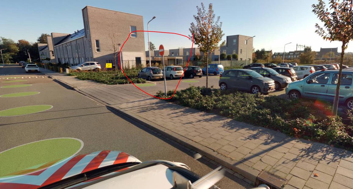 Aan de Masadastraat is een parkeerterrein gelegen bij de supermarkt. Voor dit parkeerterrein is eenrichtingsverkeer ingesteld.