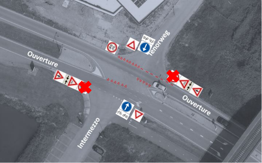 • dat voorkomen moet worden dat (brom)fietsers bij het kruispunt Ouverture/Intermezzo/Tenorweg besluiten om via de rijbaan Ouverture in westelijke richting te gaan rijden;