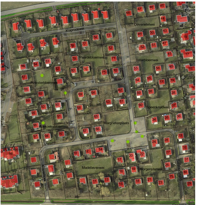 Veerweg; Lijsterbessen (Sorbus) huisnummers: 3, 9, 11, 13, 17, 23, 27, 31, 41 (2 stuks), 43, 45, 47, 55, 57, 59, 65, 67, 71, 73, 75, 79, 81, 83, 85, 91, 95, 101 (2 stuks), 103, 107, 113, 115, 121, 123 (2 stuks), 129, 131 (2 stuks), 133, 135 (2 stuks), 139 en 141.