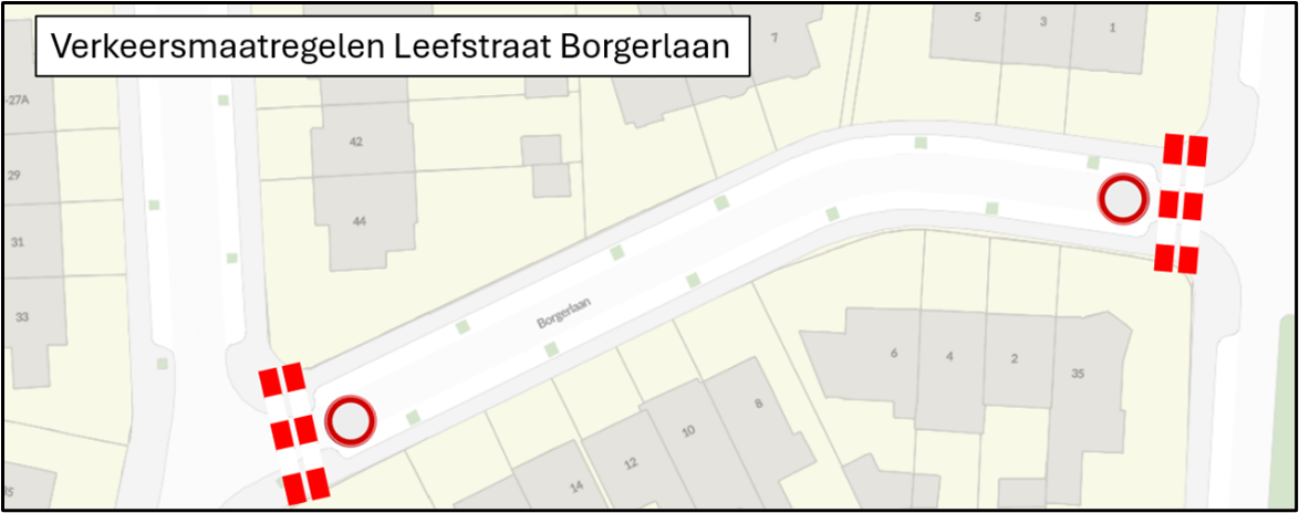Om het plan ‘Leefstraat’ mogelijk te maken is het noodzakelijk dat voertuigen en bestuurders uit een deel van de Borgerlaan worden geweerd, waarbij de straat wel voor nood- en hulpdiensten bereikbaar blijft.
