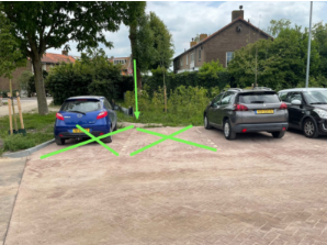 - Anemonenplein: haakse parkeervakken op het openbare parkeerterrein aan het Anemonenplein, ter hoogte van de de bestaande openbare laadpaal.