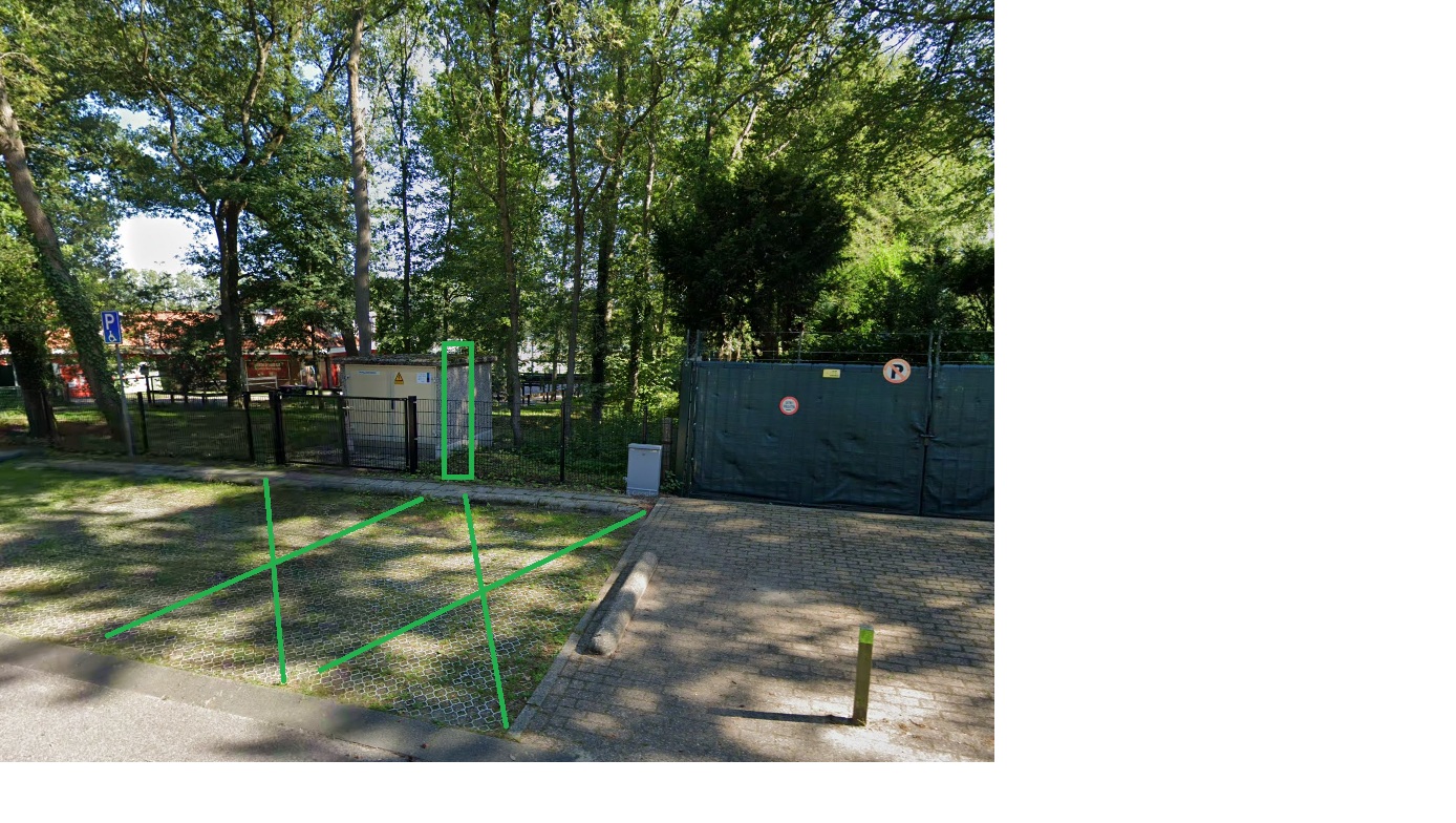 - Deken Zondaglaan: haakse parkeervakken op het openbare parkeerterrein aan de Deken Zondaglaan 5, ter hoogte van voormalig Skatepark Duinweide.