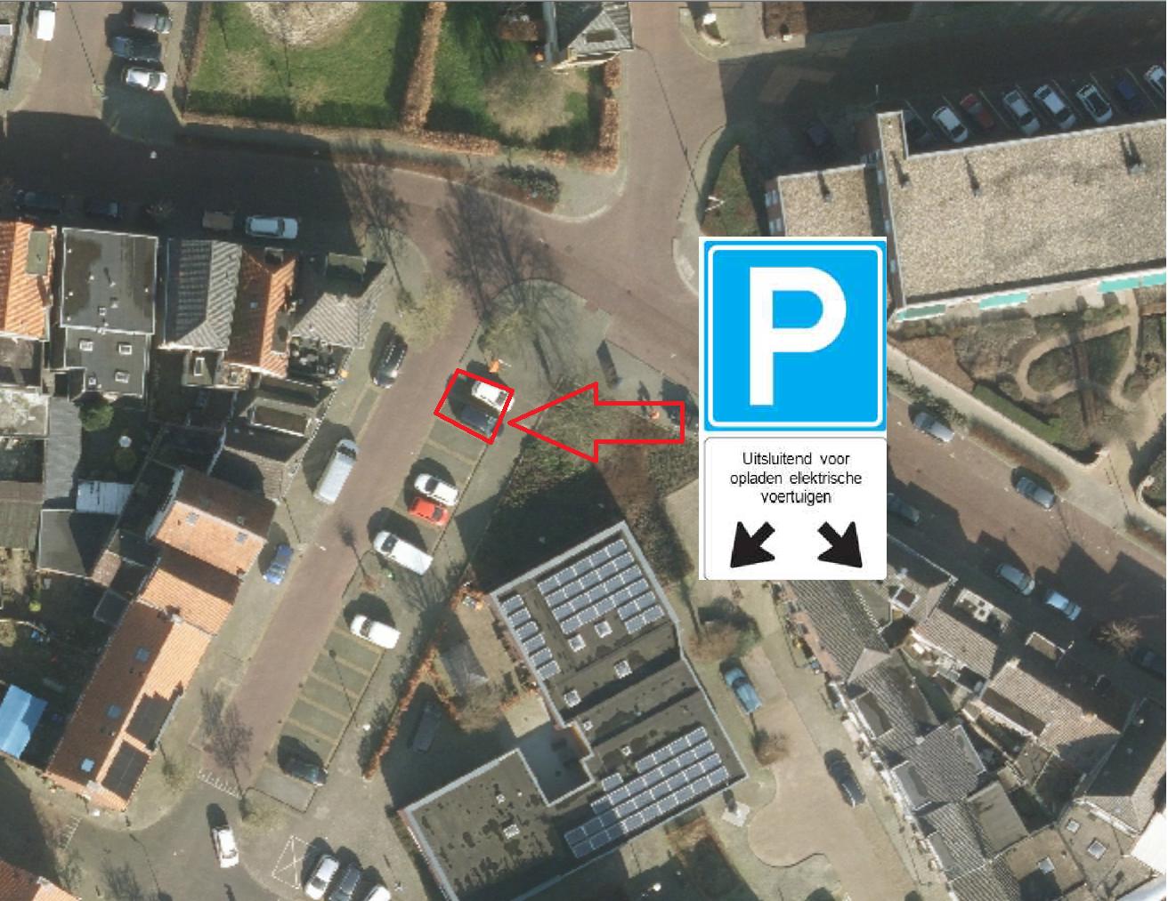 - door middel van het plaatsen van het verkeersbord E4 van bijlage 1 van het RVV 1990 met een onderbord met de tekst ‘opladen elektrische voertuigen’ – en een onderbord met pijlen, waaruit blijkt dat het bord voor twee parkeerplaatsen van toepassing is- op de Julianastraat ter hoogte van nummer 63, een tweetal parkeerplaatsen te reserveren op het aangrenzende parkeerterrein ten behoeve van het opladen van elektrische voertuigen.