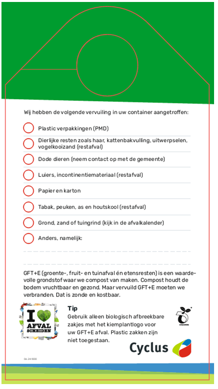 Indien er oud papier en karton niet wordt ingezameld, dan meldt Cyclus dat uiterlijk de volgende dag bij de gemeente en vermeldt daarbij straat, huisnummer en de reden waarom het oud papier en karton is blijven staan.
