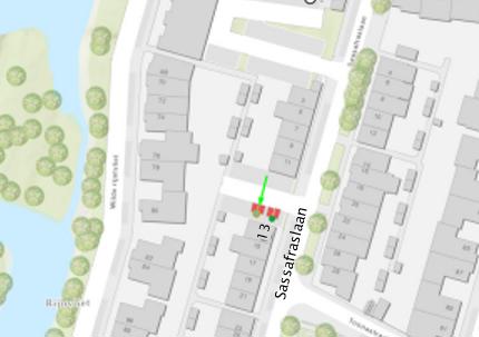 Sassafraslaan (ter hoogte van de zijkant van perceel Sassafraslaan 13; wegvak tussen Wilde Rucolavliet en Sassafraslaan 37)