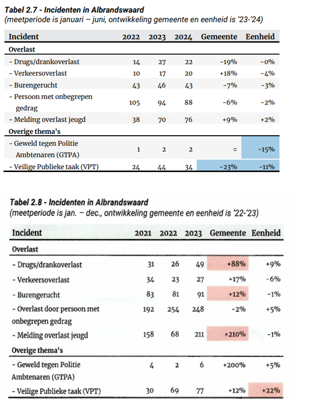 Uit onderstaande eerste halfjaar cijfers van 2024 blijkt dat de overlastcijfers over het algemeen weer lager zijn ten opzichte van het eerste half jaar van 2023.