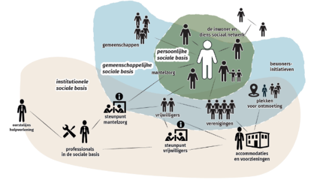 Met het belang van de intrinsieke waarde van de sociale basis voorop, ondersteunt de gemeente - vanuit de institutionele sfeer - de persoonlijke en gemeenschappelijke sfeer.