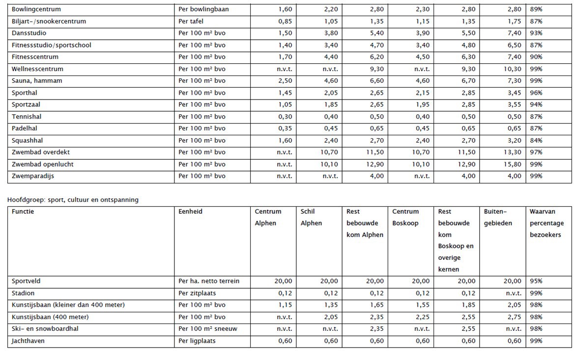 Bijlage 6: Tabel met aanwezigheidspercentages per functie en tijdperiode om met gebruik van de parkeerbalans de parkeerbehoefte te berekenen;