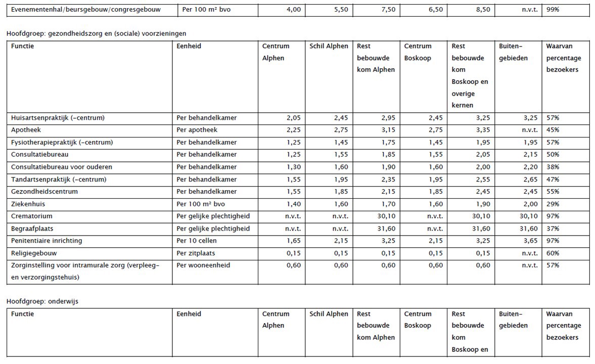 Bijlage 7: Omrekenfactoren voor parkeerplaatsen op eigen terrein;
