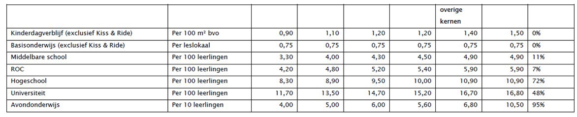 Tabel B5.5: totaaloverzicht parkeereis auto- en fietsparkeren.