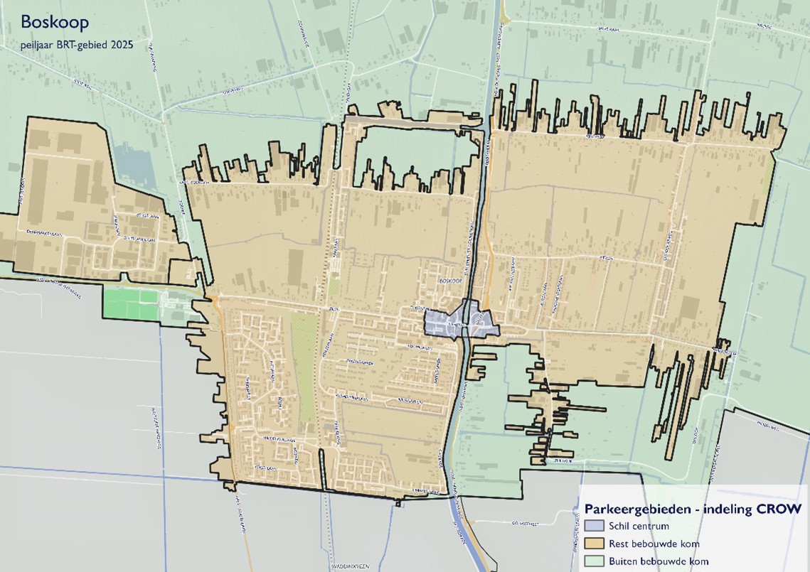 Het verzoek is om de omgeving van dit zorgcentrum aan te wijzen als gebied met dezelfde parkeerbehoefte als centrum Boskoop met als kenmerk: (matig) stedelijk.