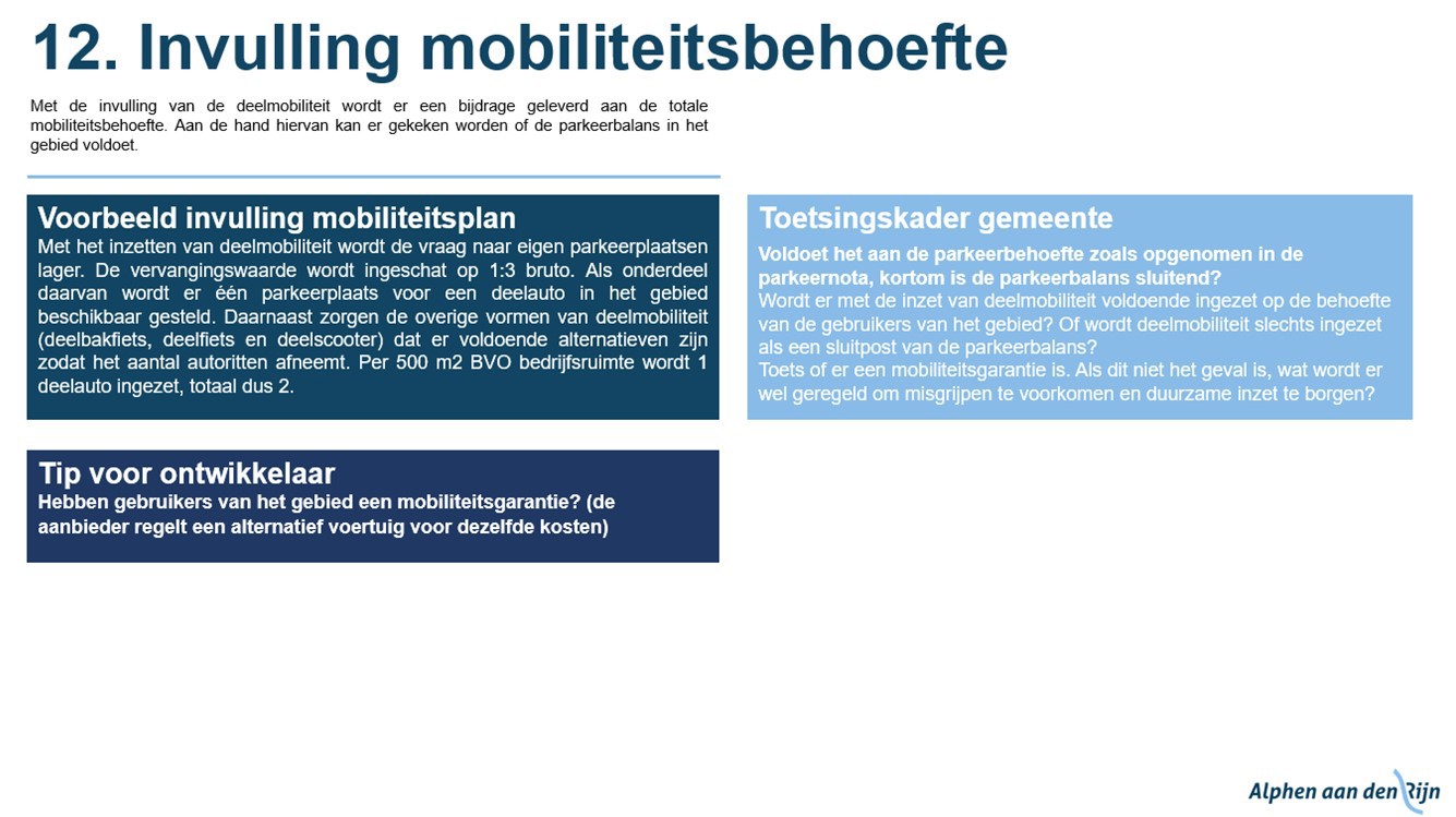 • Proces en stappenplan: Een stapsgewijze aanpak van hoe projecten worden getoetst aan de parkeernormen.