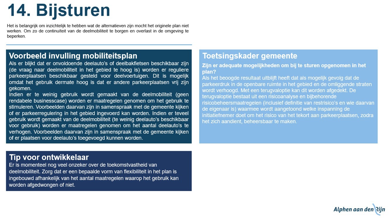 • Overige onderwerpen: Korte uitleg over onderwerpen zoals laadpalen, parkeerplaatsen voor gehandicapten en hoe om te gaan met verkeersgeneratie.