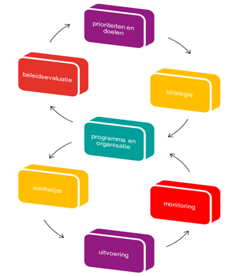 Schematisch wordt dit onderstaand weergegeven in de beleidscyclus.