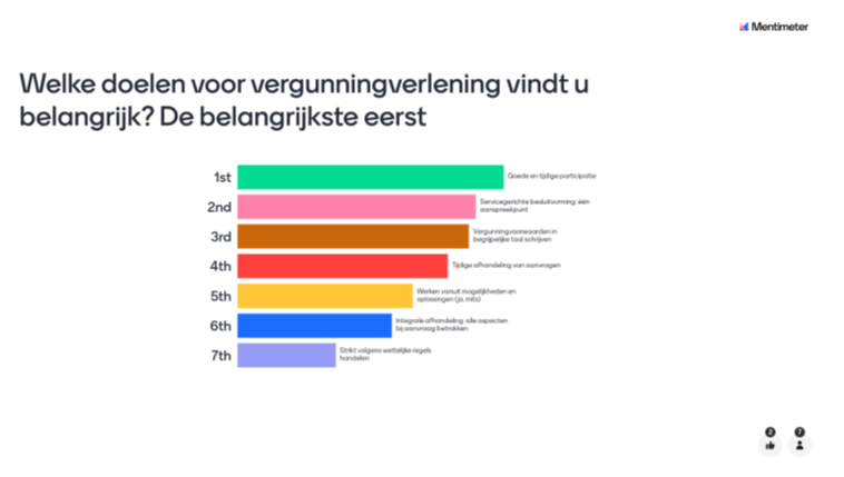 De ambtelijke organisatie vindt de volgende drie algemene doelen voor vergunningverlening het belangrijkst: