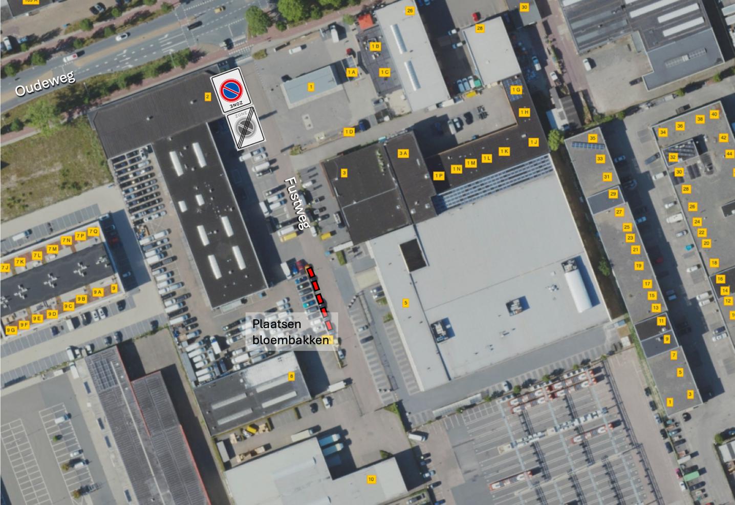 dat er op verschillende plaatsen op de Fustweg, waaronder tussen de inrit Fustweg 2(a) en inrit Fustweg 8(a), regelmatig voertuigen langs de rijbaan geparkeerd staan;