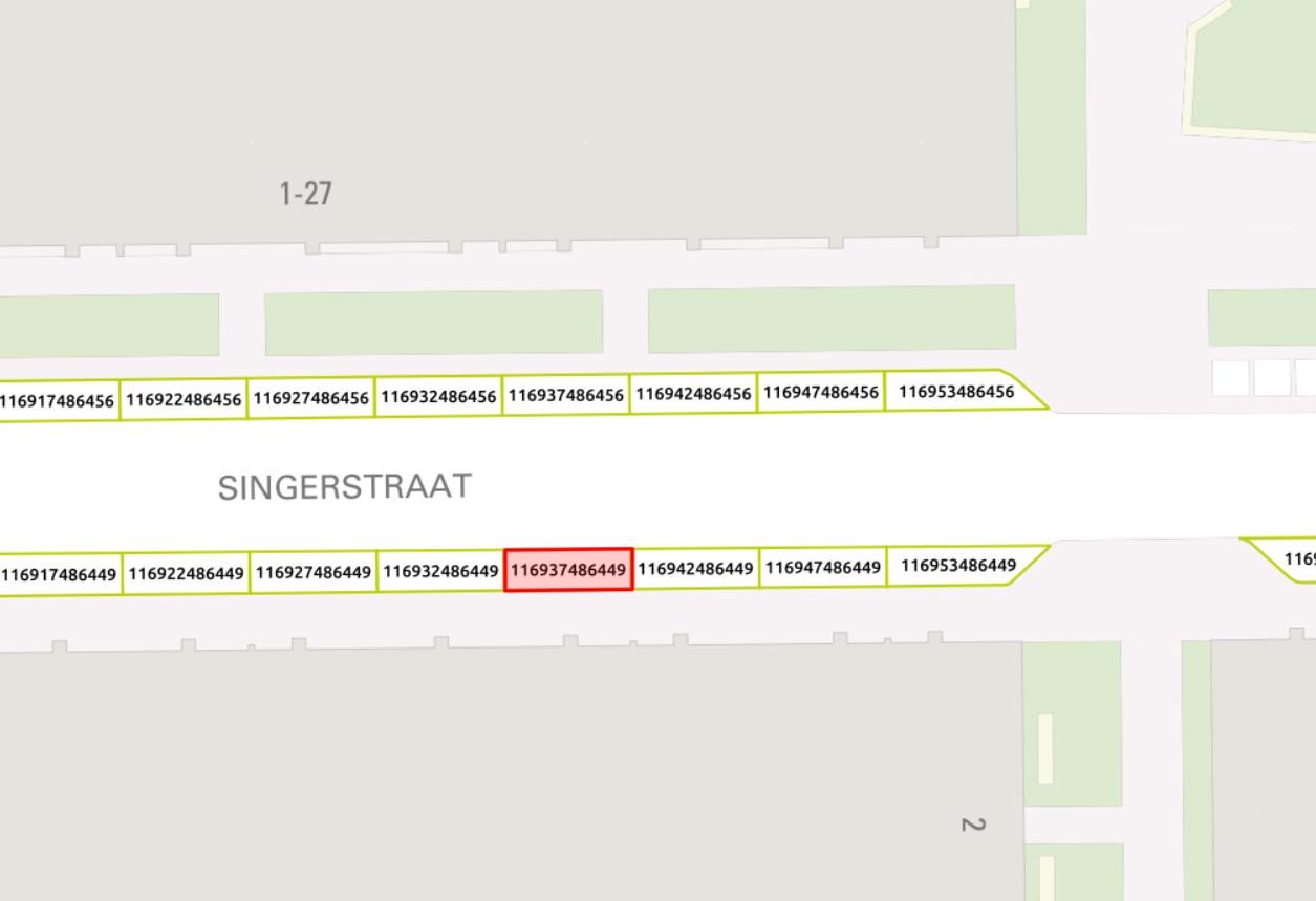 ter hoogte van perceel Singerstraat 22 een gehandicaptenparkeerplaats op kenteken is gelegen;
