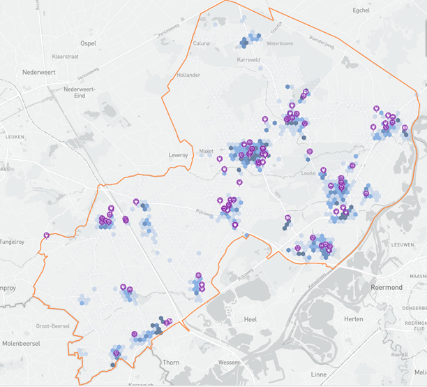 Figuur 1: bestaande laadpaallocaties in Leudal oktober 2024