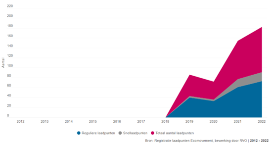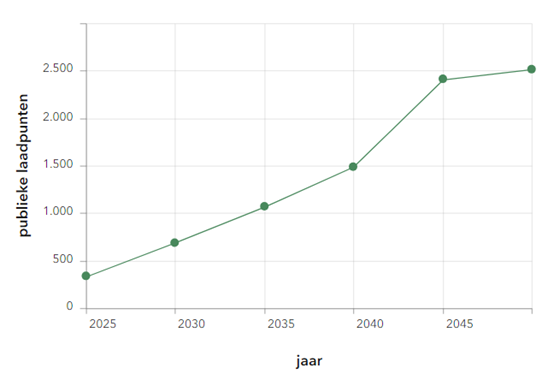 Uit de bovenstaande figuren blijkt dat we richting 2030 voor een grote opgave staan. Om te voorzien in deze laadbehoefte is een forse toename van het aantal laadpunten nodig