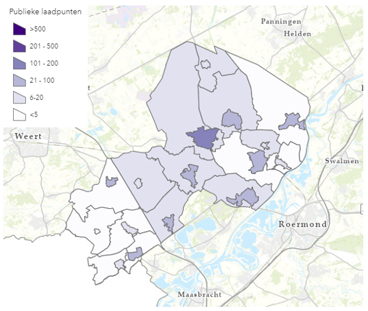 Figuur 7: aantal publieke laadpunten in Leudal in 2030, per gebied7