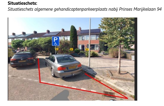 -van een inwoner een aanvraag is ontvangen voor aanwijzing van een algemene gehandicaptenparkeerplaats nabij Prinses Marijkelaan 94, Slagharen;