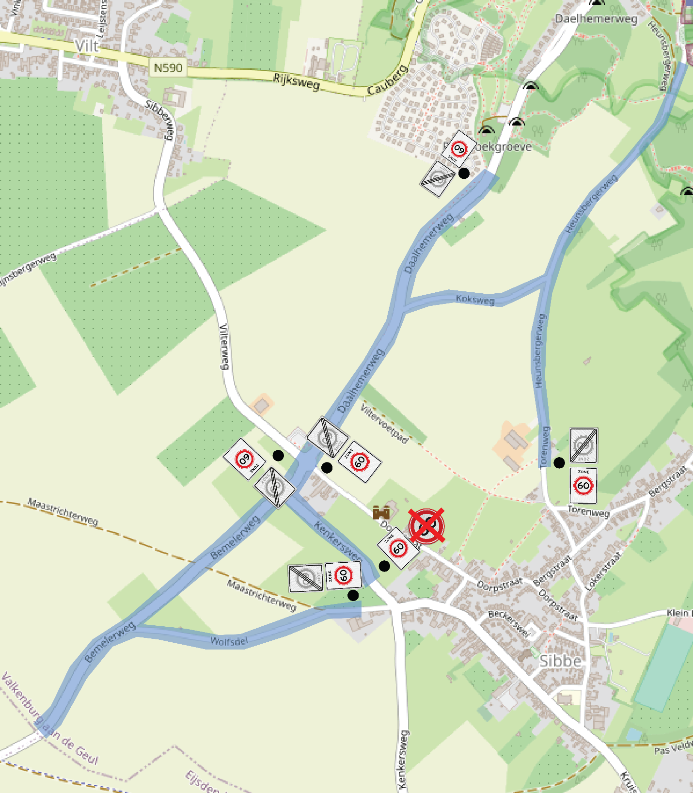 door middel van het plaatsen van borden begin/einde zone A1 (60) van bijlage 1 van het RVV 1990 op de Bemelerweg, een gedeelte van de Daalhemerweg, een gedeelte van de Kenkersweg, de Maastrichterweg, de Wolfsdel, de Koksweg en de Heunsbergerweg een maximale snelheid van 60 km/h in te stellen;