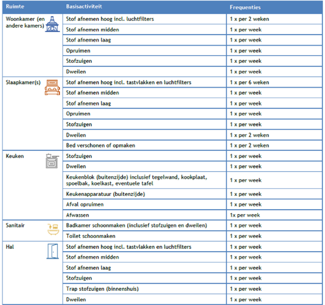 Tabel 1: Activiteiten benodigd voor een schoon en leefbaar huis