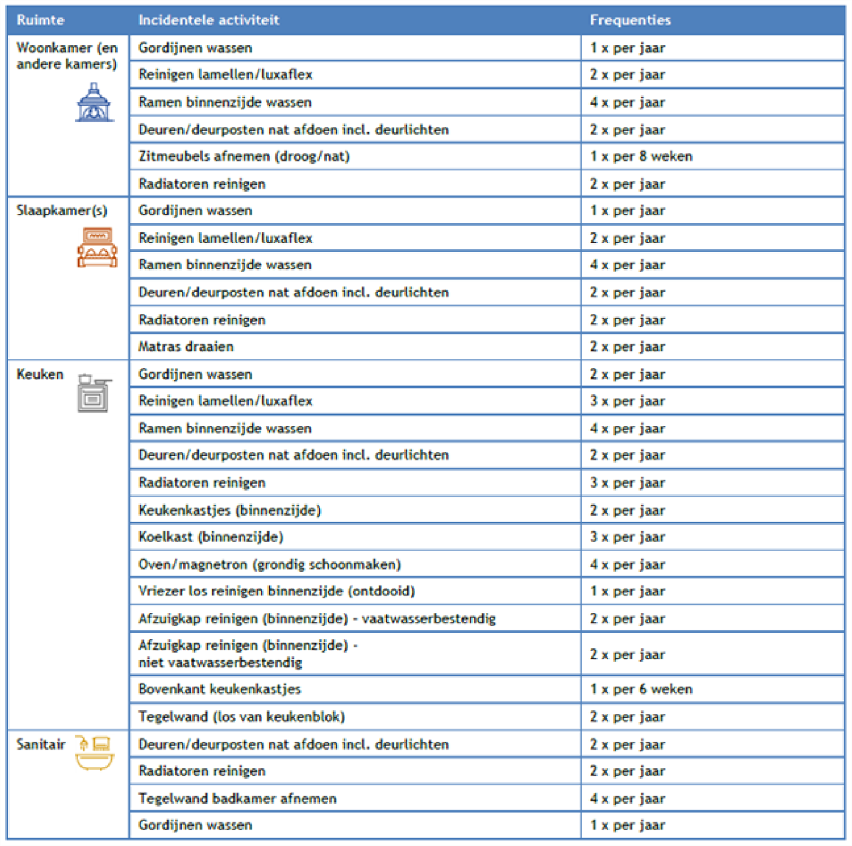 Tabel 3. Frequentie benodigd voor een schoon en leefbaar huis (incidentele activiteiten).