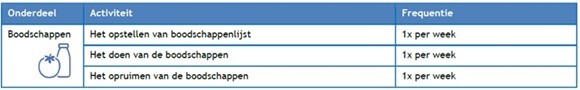 Tabel 5. Activiteiten en frequenties benodigd voor de boodschappen