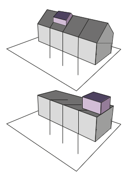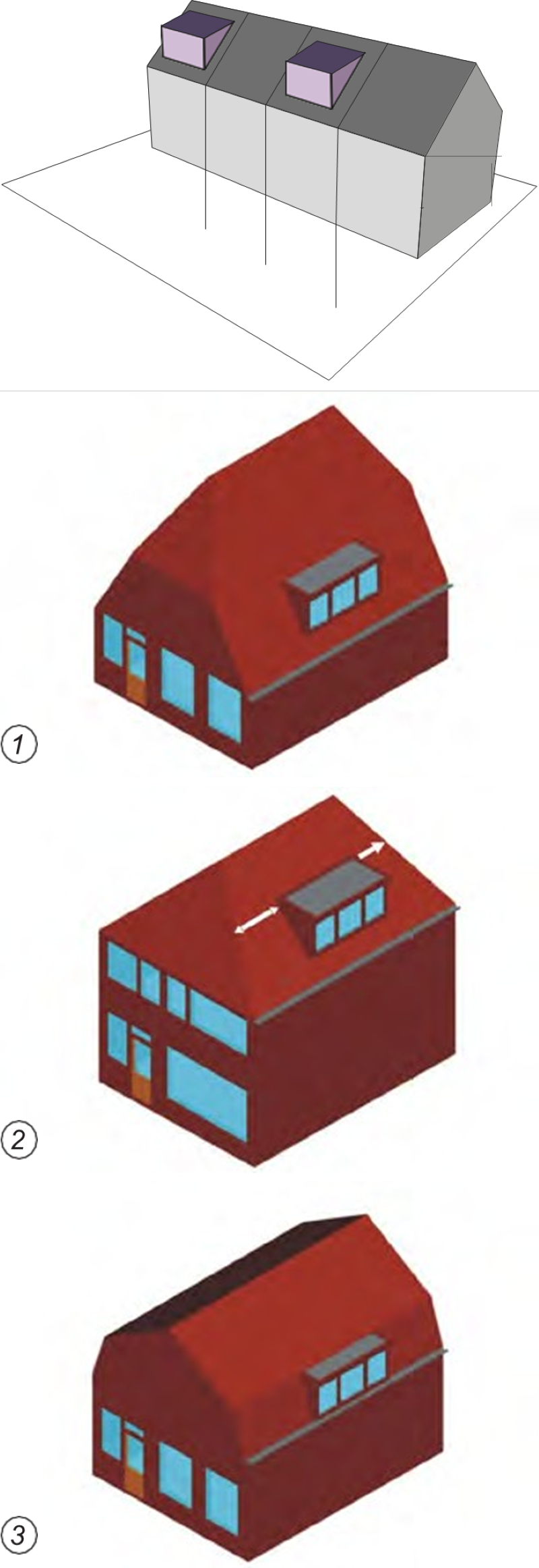 Dakopbouw een toevoeging aan de bouwmassa door het verhogen van de nok van het dak, die het silhouet van het oorspronkelijke dak verandert