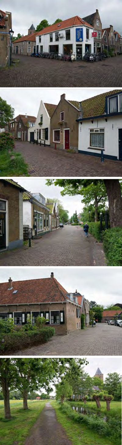 De straten zijn stenig met aaneengesloten straatwanden met individuele pan- den en korte rijen woningen. Woningen staan direct aan de weg, soms is er een overgang door middel van een stoep. Voortuinen komen vrijwel niet voor.