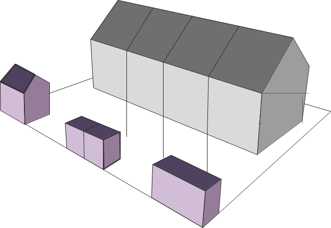 Bedrijfsbebouwing gebouwen ten behoeve van bedrijven zoals hallen, werk- plaatsen en loodsen; hebben meestal een utilitair karakter