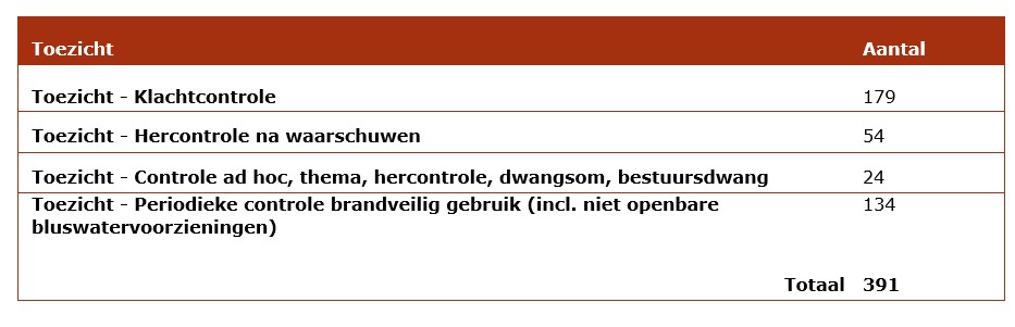 In onderstaande tabel is de uitvoering van de algemene taken op het gebied van toezicht en handhaving opgenomen.