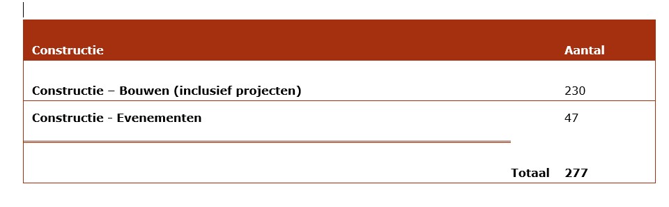 In onderstaande tabel zijn de gegeven constructieadviezen voor bouwen en evenementen opgenomen.
