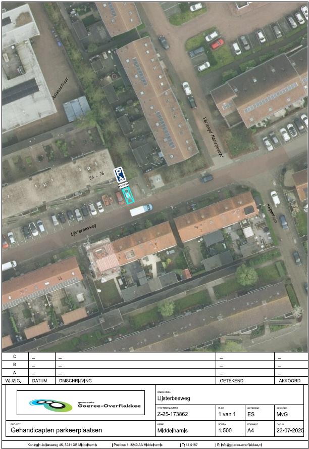 AANWIJZEN GEHANDICAPTENPARKEERPLAATS OP KENTEKEN LIJSTERBESWEG TE MIDDELHARNIS