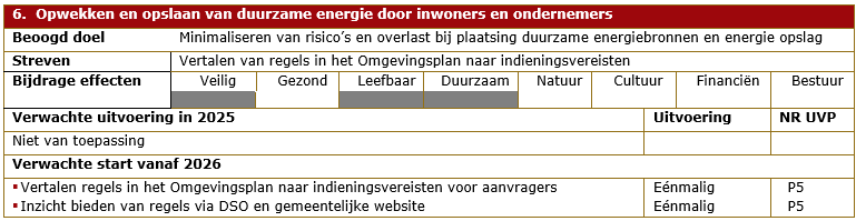 In onze Uitvoerings- en Handhavingsstrategie VTH 2025-2028 zijn uitgangspunten en prioriteiten genoemd. In dit hoofdstuk komen deze terug en zijn ze uitgewerkt naar een geplande uitvoering in 2025. De prioriteiten en doelen in de U&H-strategie zijn meerjarig en kunnen en hoeven niet allemaal in 2025 te worden opgepakt. Om die reden is aangegeven in hoeverre de uitvoering is voorzien in 2025 en daarna.