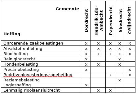 Bijlage 1 behorende bij het Gezamenlijk Aanwijzingsbesluit WOZ en Belastingen Regeling onderlinge samenwerking Drechtstedengemeenten