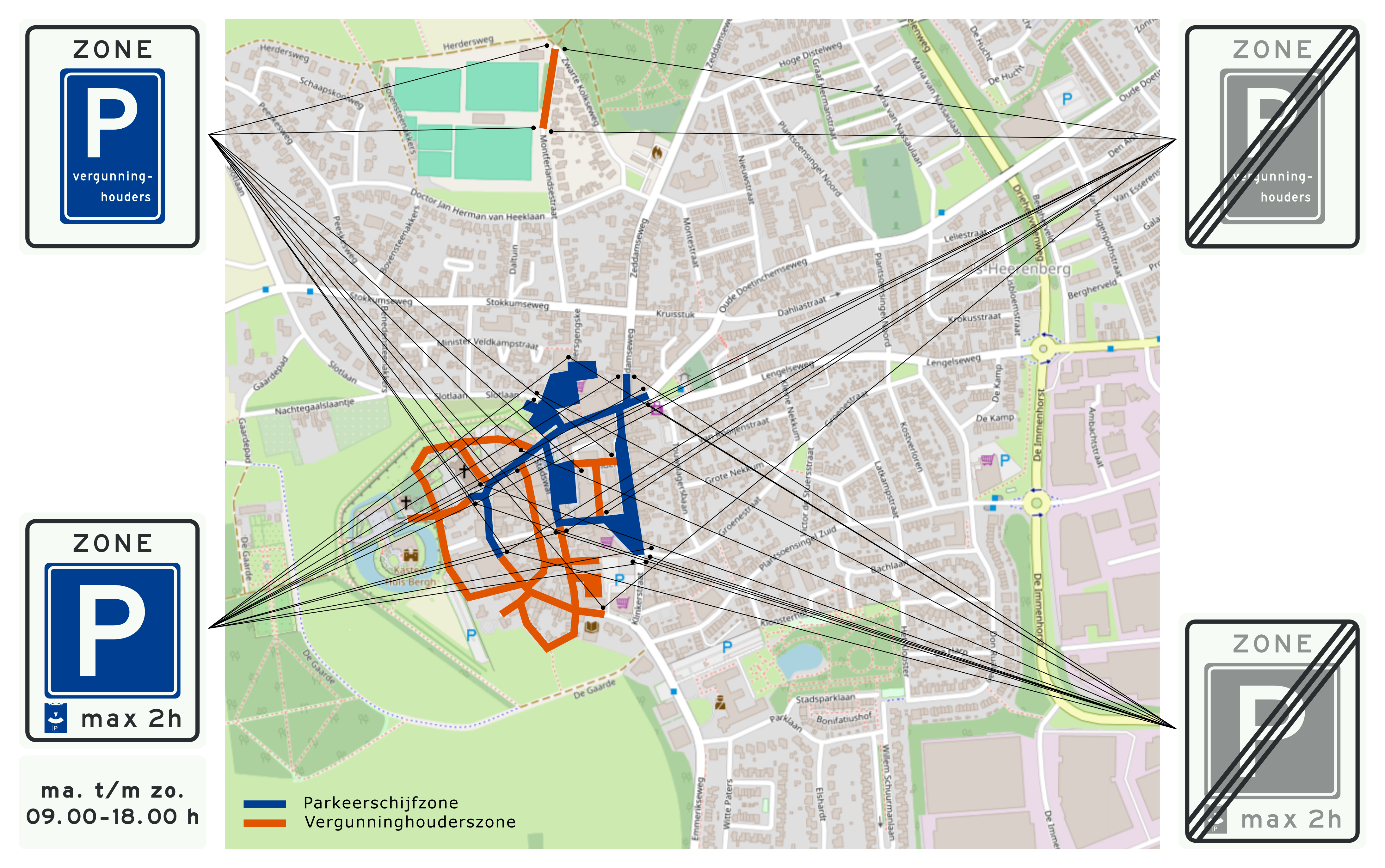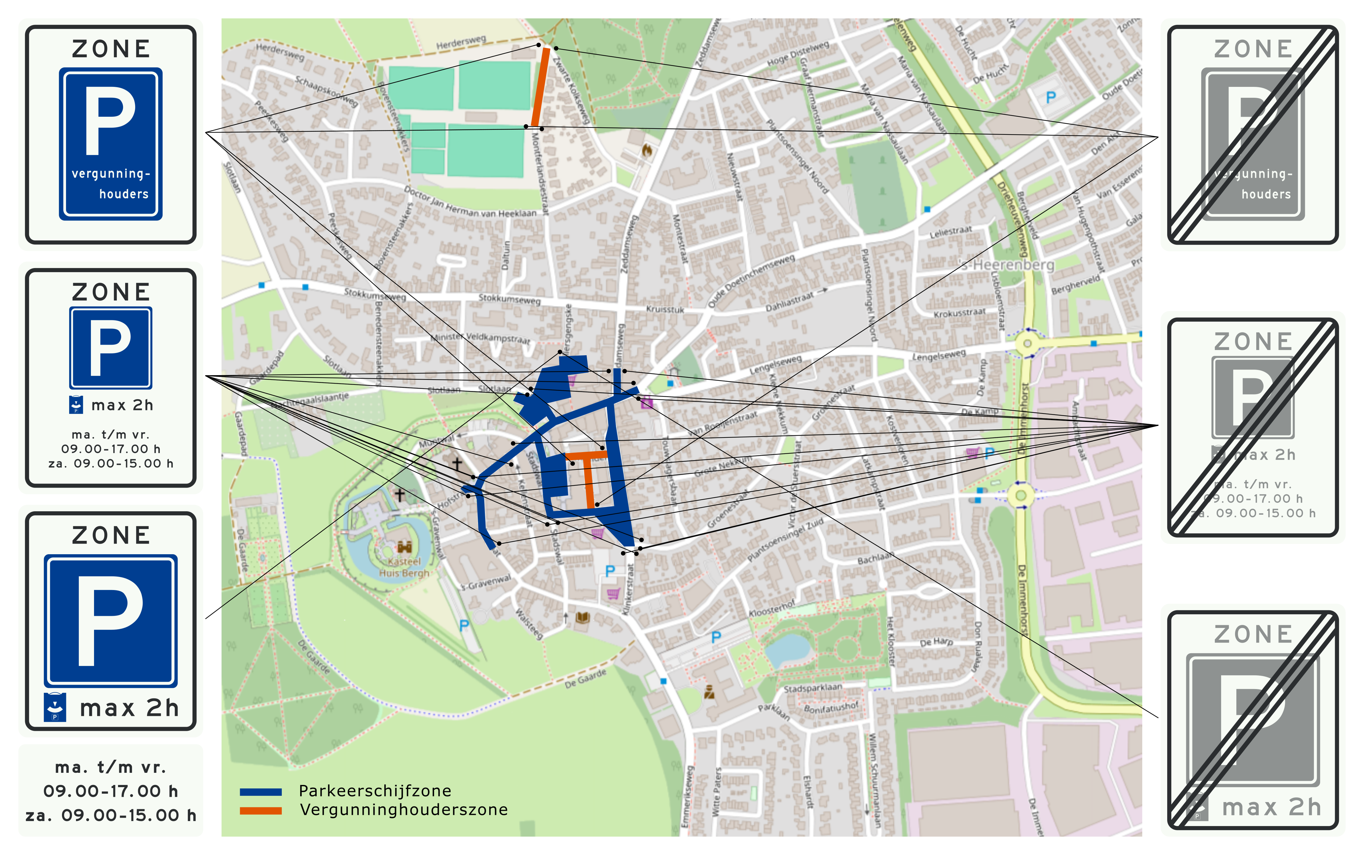 Tot slot breiden wij de vergunninghouderszone in het centrum van ’s-Heerenberg uit met de volgende straten: Muntwal, Kerkstraat, ’s Gravenwal, Hofstraat, Oudste Poortstraat, Kellenstraat, Gasthuisplein, Stadswal, Walsteeg en een deel van de Marktstraat. Daarvoor: