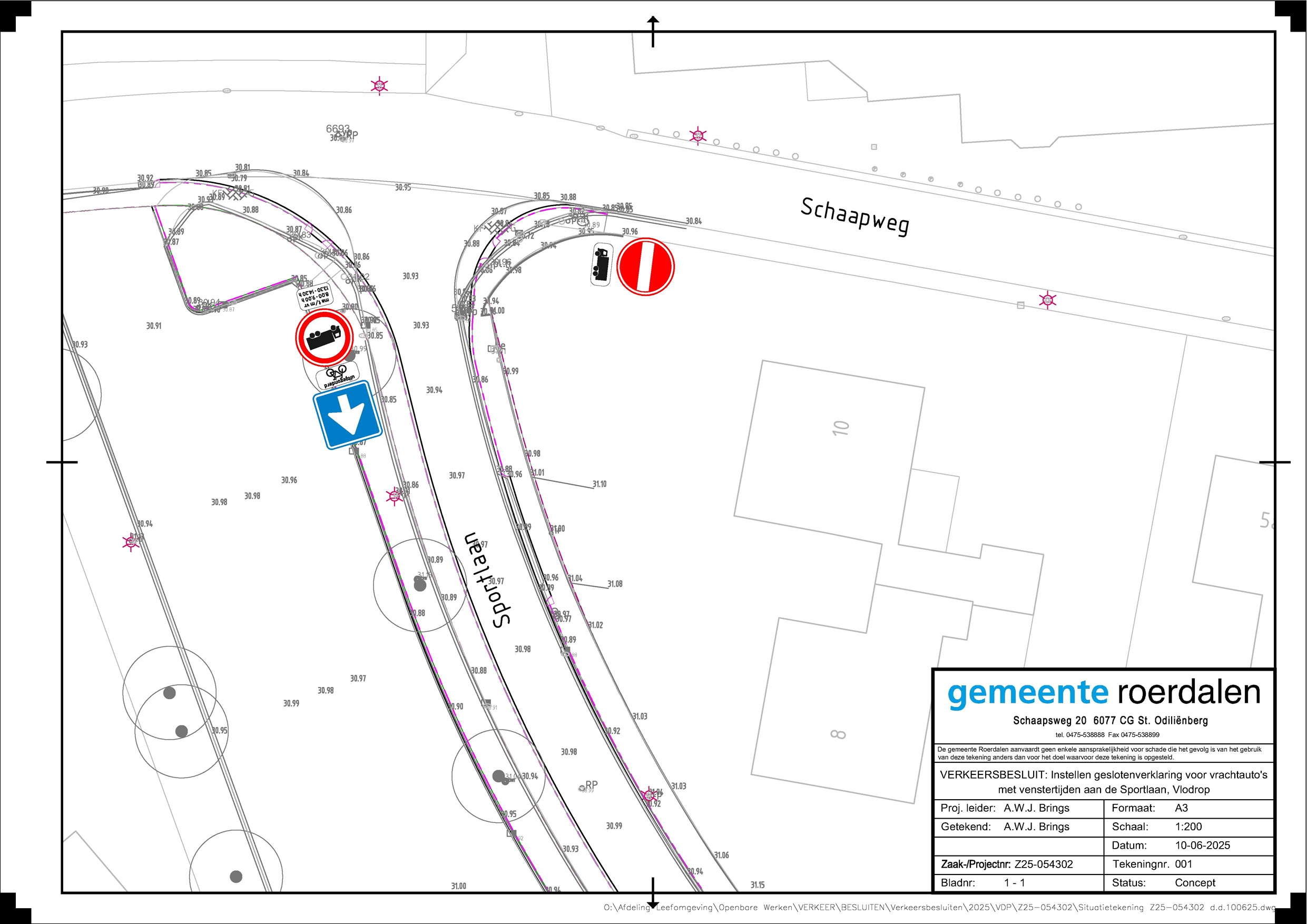 Ter hoogte van de bocht Sportlaan – Schaapweg het verkeersbord C03 om te vervangen door het verkeersbord C02 en ter hoogte van de bocht Sportlaan – Schaapweg het verkeersbord C02 te vervangen door het verkeersbord C03. De onderborden OB11 blijven op beide locaties gehandhaafd. Zo blijven het bedrijventerrein Schaapweg en Vekoma altijd bereikbaar voor vrachtverkeer.