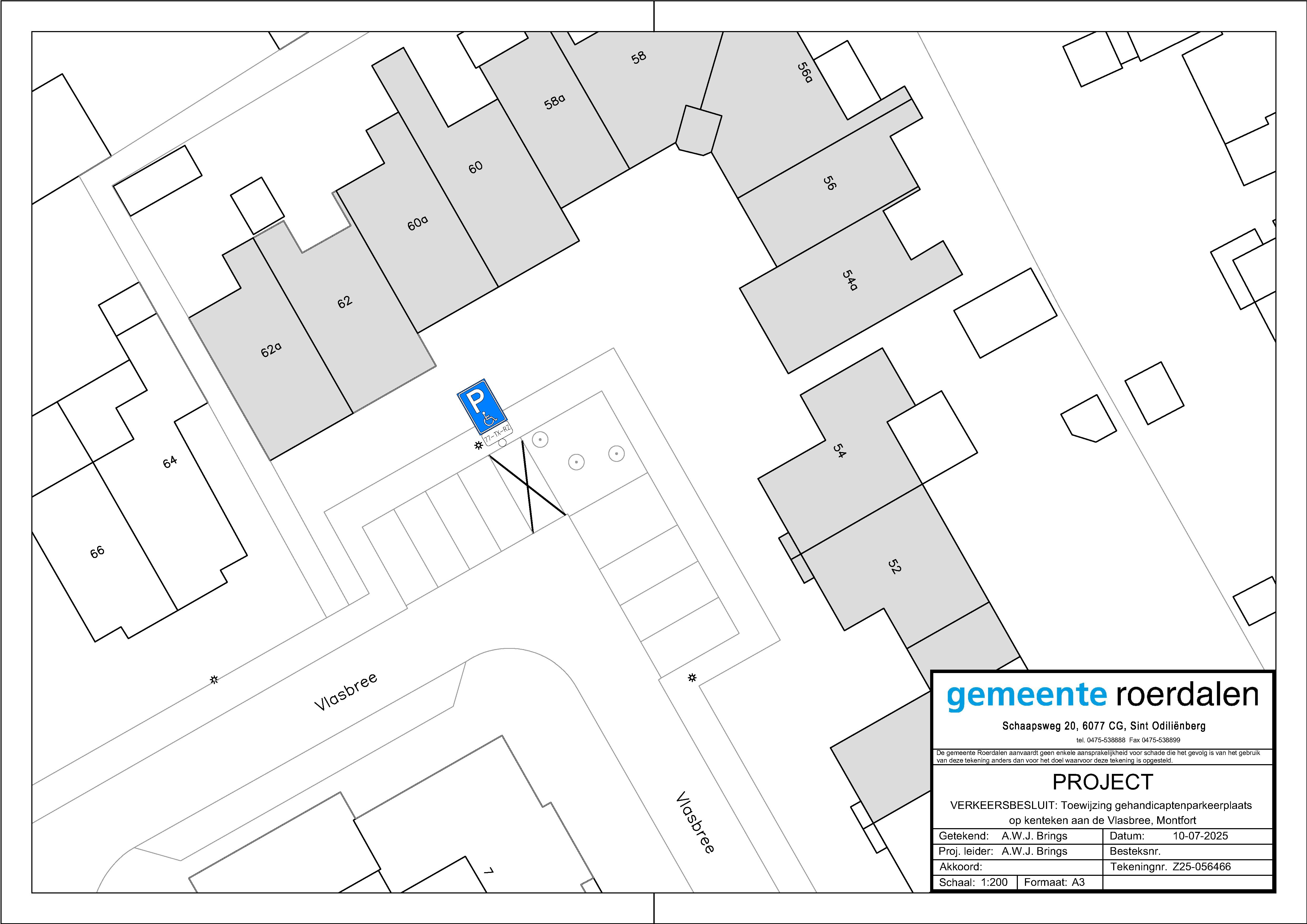Verkeersbesluit: Toewijzing gehandicaptenparkeerplaats op kenteken aan de Vlasbree, Montfort