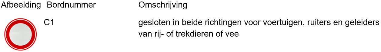 Bebording volgens het Reglement Verkeersregels en Verkeersteken (RVV) 1990: