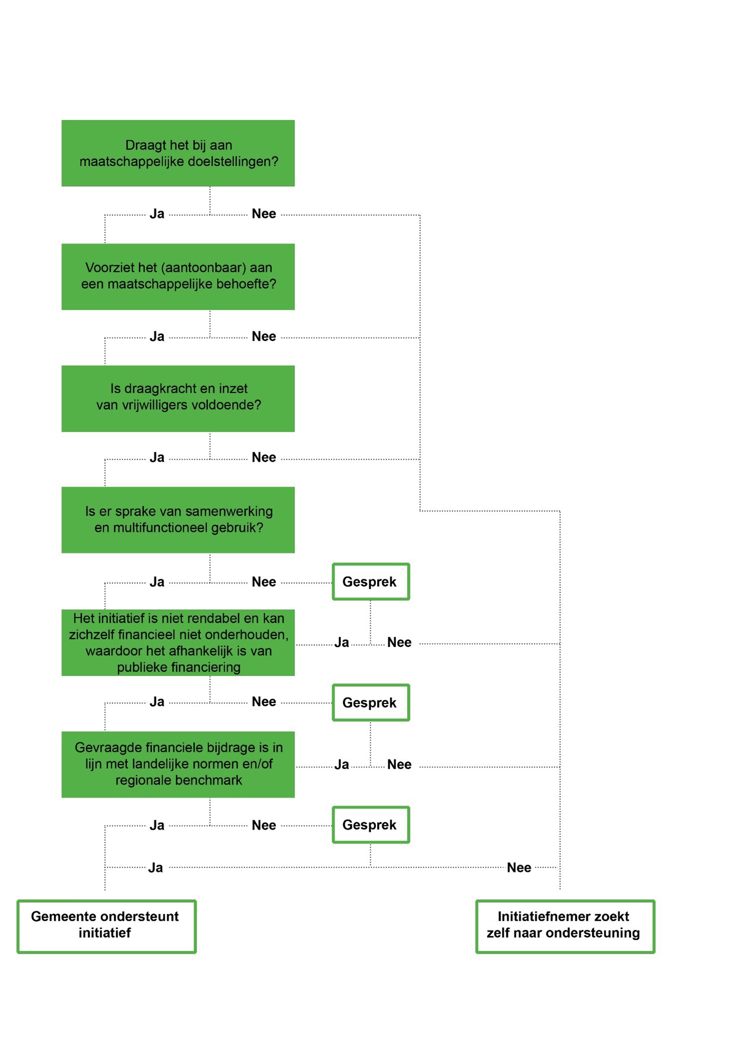 Voortaan leggen we de nadruk van 'recht hebben op' naar 'zorgen dat'. De verschuiving gaat van basisvoorziening naar maatwerk. Het betreft noodzakelijke voorzieningen die niet rendabel zijn vanuit een puur financieel perspectief voor een betaalbaar verenigingsleven, maar waar toch behoefte aan is binnen de gemeenschap.